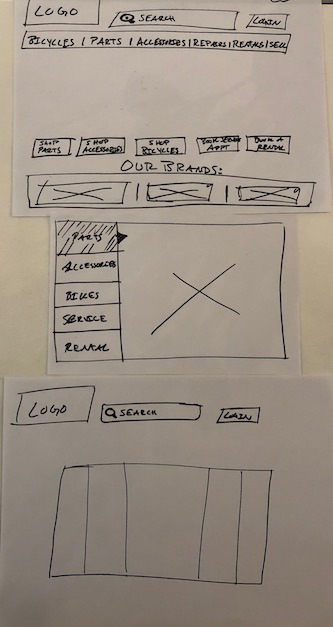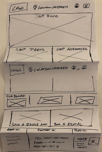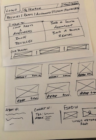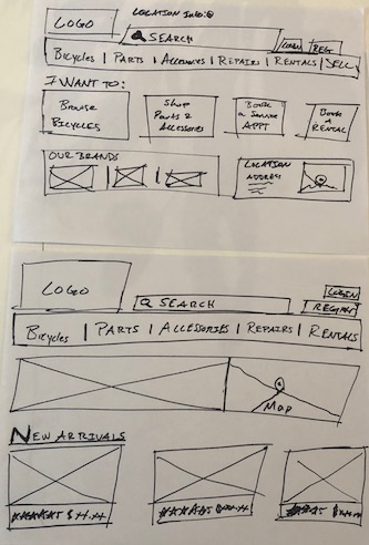 I iterated multiple layouts/ideas for each page of the site on paper. I quickly learned that since cycling was a very visual & tactile experience, that creating a homepage that reflected that was key.